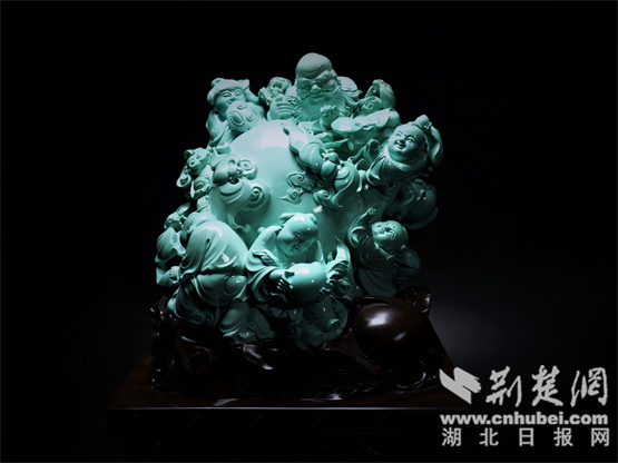 非物质文化遗产曹红星绿松石雕塑《五个孩子生日快乐》。图片提供:通讯员